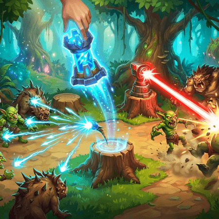 Masuki medan pertempuran hutan yang rimbun di mana gelombang monster pohon berjalan yang tak berujung mengancam untuk menyerbu markas Anda. Penempatan menara secara strategis memungkinkan Anda menciptakan garis pertahanan yang menghentikan makhluk-makhluk itu sebelum mereka mencapai jantung hutan Anda. Tingkatkan menara Anda dengan kemampuan yang ampuh dan jangkauan yang lebih luas untuk beradaptasi dengan gelombang musuh yang lebih tangguh dan menjaga hutan tetap aman. Setiap level menantang Anda untuk menyeimbangkan manajemen sumber daya, penempatan menara, dan pengaturan waktu, menghadirkan gameplay pertahanan menara klasik yang menghargai perencanaan yang cermat. Jika Anda menyukai teka-teki pertahanan menara strategis, mempertahankan hutan dari monster pohon yang tak henti-hentinya akan membuat Anda tetap terlibat dan bersemangat untuk menguasai setiap peningkatan.